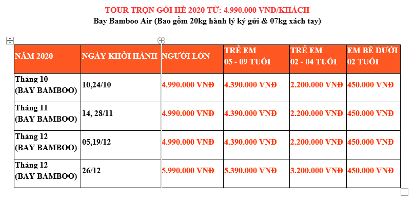 (*) Lưu ý: Lộ trình tour sẽ được điều chỉnh phù hợp theo Lịch trình bay của từng Đoàn